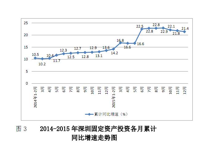全年全市固定资产投资3298.31亿元,增长21.4%,增速创自1999年以来连续17年新高,分别高出全国和全省11.4和5.6个百分点,其中城市更新改造投资573.02亿元,增长43.1%,占固定资产投资比重17.4%,同比提高2.7个百分点。从投资主体看,国有经济投资1023.93亿元,增长35.1%;港澳台及外资投资582.47亿元,增长106.4%;民间投资1691.91亿元,增长0.9%。从投资渠道看,房地产开发项目投资1331.03亿元,增长24.5%;非房地产开发项目投资1967.27亿元,增长19.4%。分产业看,第二产业投资591.05亿元,增长13.4%;第三产业投资2706.64亿元,增长23.3%。分区域看,南山区固定资产投资633.99亿元,增长52.4%(其中前海片区投资203.95亿元,增长74.0%;蛇口片区投资64.84亿元,增长9.3%);罗湖区投资125.90亿元,增长32.4%;福田区投资235.38亿元,增长29.9%;宝安区投资545.72亿元,增长18.5%;光明新区投资269.28亿元,增长16.5%;龙华新区投资411.34亿元,增长15.2%;坪山新区投资246.82亿元,增长15.2%;龙岗区投资658.09亿元,增长9.3%;盐田区投资99.59亿元,增长8.1%;大鹏新区投资72.19亿元,增长6.2%。