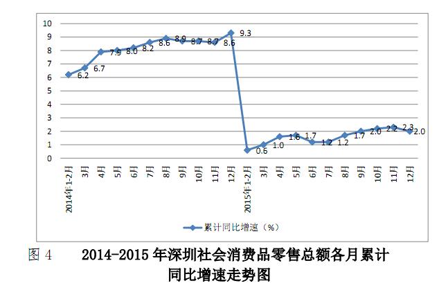 全年全市社会消费品零售总额5017.84亿元,增长2.0%(扣除汽车限购一次性政策因素后社会消费品零售总额4429.61亿元,增长9.7%),其中限额以上社会消费品零售总额3436.35亿元,下降4.5%。从消费类别看,批发与零售业零售额4448.14亿元,增长1.3%,其中限额以上商业零售额3055.66亿元,下降5.7%,限额以下和个体户零售额1392.48亿元,增长21.2%;住宿餐饮业零售额569.69亿元,增长7.7%。分区域看,大鹏新区社会消费品零售总额52.02亿元,增长8.1%;盐田区61.90亿元,增长8.0%;光明新区99.70亿元,增长6.0%;龙华新区235.60亿元,增长3.3%;龙岗区549.56亿元,增长3.0%;宝安区721.69亿元,增长2.5%;坪山新区59.34亿元,增长2.4%;罗湖区1033.75亿元,增长2.2%;南山区670.90亿元,增长1.2%;福田区1533.38亿元,增长0.8%。
