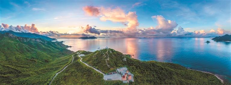 近日,中国气象局公共气象服务中心、中国气象服务协会、中国环境监测总站等单位联合发布《2022年中国天然氧吧绿皮书》,大鹏新区入选。大鹏新区围绕“生态立区、经济强区、福民兴区”定位,打造“绿水青山就是金山银山”实践创新标杆。图为满天红霞映照西涌天文台。