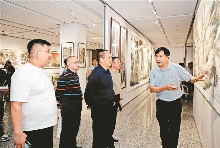 原东平国画艺术展现场,市民和嘉宾驻足欣赏、交流。