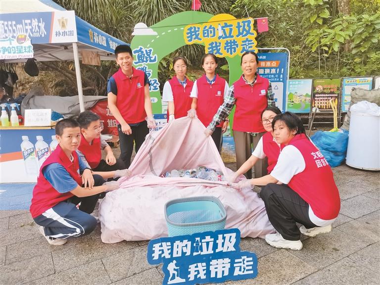 记者了解到,国庆中秋长假,深圳全市各区持续开展“山海捡塑 绿美鲲鹏”系列宣传活动,在鲲鹏径沿线登山出入口处设置了20余个志愿服务实践点。身穿红马甲的志愿者们驻守“山海捡塑”志愿服务实践点,为市民发放“我的垃圾我带走”垃圾袋,引导市民参与“捡塑换享”“空瓶换水”等互动活动。据统计,10月1日至8日,全市各区累计发动超3万人次参与活动,回收空瓶近10万个,兑换矿泉水及其他环保礼品超1万份,以实际行动践行“我的垃圾我带走”环保理念。