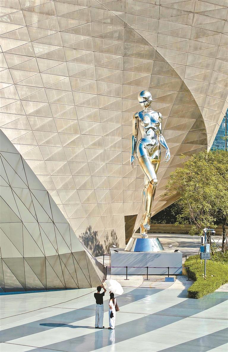 由深圳市当代艺术与城市规划馆(以下简称“两馆”)携手南志阁艺术中心推出的空山基大型特展“光·透明·反射”于10月11日开幕。该展于10月12日在“两馆”一层综合展厅面向观众开放。高达12米、重达数吨的巨型机械姬雕塑首次在华南地区震撼亮相。
