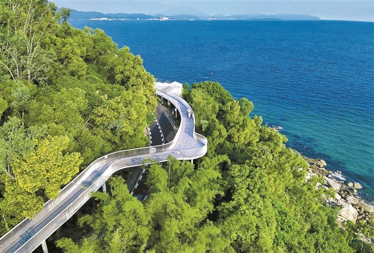 日前,地铁通到溪涌,游客可到溪涌体验观海栈道云桥,一面山林环抱,一面碧波无垠,如行走于流动画卷中。