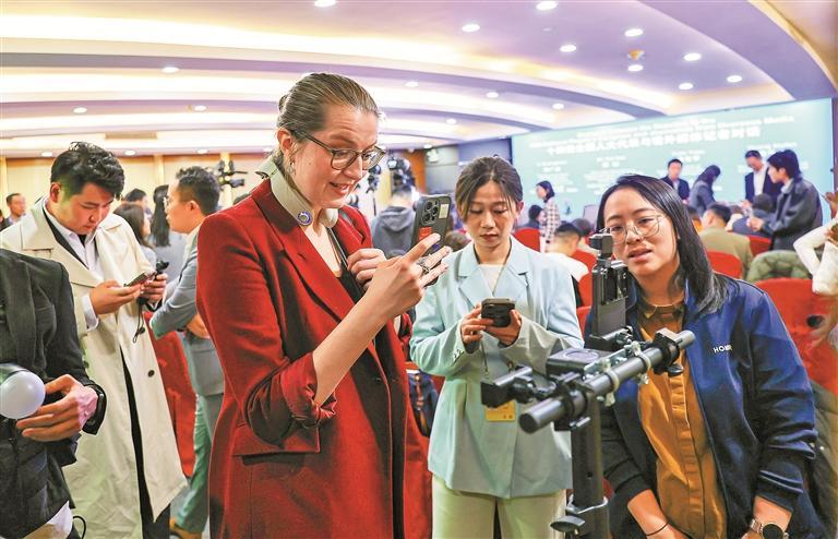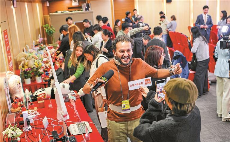 在茶歇区,华强北“AI八骏”等一批来自深圳的科技“广货”吸引众多境外记者前来体验。