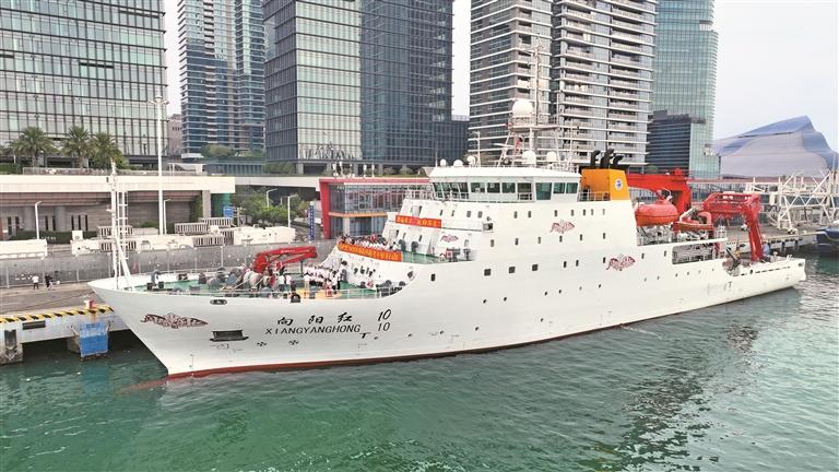 3月28日,深圳蛇口国际邮轮母港,“向阳红10”号科考船承载的“深蓝百万里”十年计划2026西太平洋航次科考正式起航。
