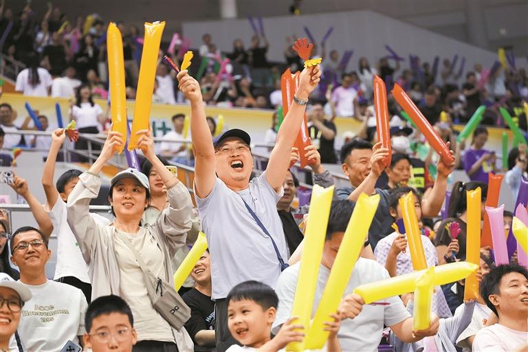 全体队员身着西装,深圳最有“班味”啦啦队昨日在赛场为深圳队加油。