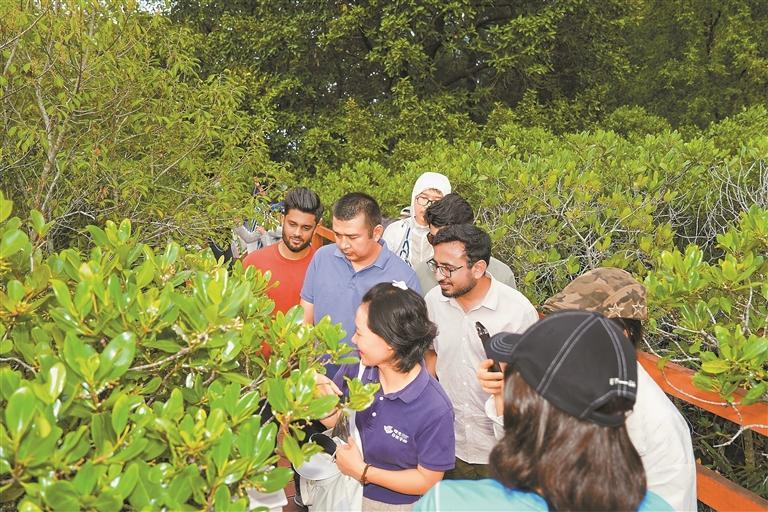 留学生走进坝光银叶树湿地公园开展生态观察。