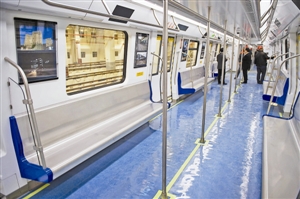 昨天记者在深云车辆段看到了地铁7号线列车,白色的车身配上蓝色的线条,外观大气典雅,清新的感觉让人眼前一亮。地铁7号线列车采用6节编组A型铝合金车,设计时速80公里,由中车长春轨道客车公司研发制造。深圳地铁集团建设总部相关负责人表示:“车辆设计以环保节能、安全稳定、乘客体验等为主要元素,在安全运行的前提上,最大限度地挖掘环保节能潜能,保证乘客乘坐的舒适度和乘车体验的满意度。”走进地铁7号线列车,记者看到新车内部干净整洁,内部设置与现有几条线路基本一样。深圳地铁集团建设总部相关负责人表示:“每节车厢里都有一排凳子被拆掉,这样可以提高高峰时段的载客量。但是我们优化设置了腰靠,乘客站立时可以靠在上面。”