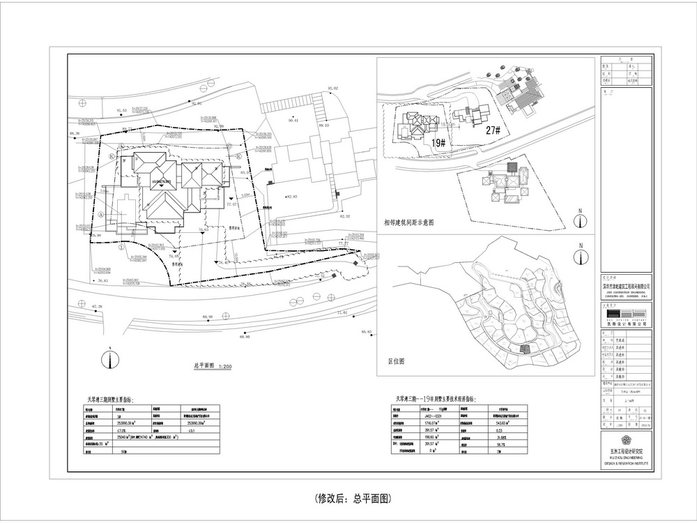 深圳市富春东方房地产开发有限公司(下称用地单位)的天琴湾三期项目位于盐田区大梅沙J402-0331号宗地,建设用地面积253990.39平方米,2006年取得《建设用地规划许可证》(07-2006-0024号)并签订土地合同《增补协议书》(20068106号),其中的19#楼已报建并取得《建设工程规划许可证》(BH-2007-0171号)。现用地单位申请对该栋楼施工图纸进行局部修改,内容包括对建筑单体位置、局部室外环境、建筑内部平面布局及相应的建筑外立面进行调整,修改前、后的总平面图及外立面图等详见项目现场及深圳市规划和国土资源委员会网站(http://www.szpl.gov.cn),修改内容仅限修改后图纸中云线圈注部分。修改后的各项规划指标等仍符合上述《建设用地规划许可证》、土地合同《增补协议书》中的相关规划要求。