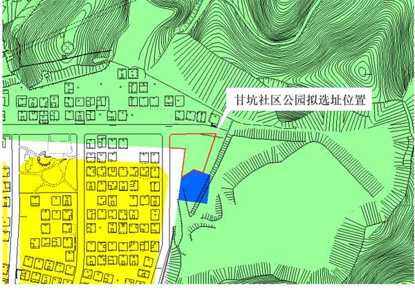 布吉街道申请甘坑社区公园选址,申请用地为公共绿地,用地面积1785平方米,坐标:X=32203.42,Y=120105.47; X=32202.77,Y=120051.11;X=32199.57,Y=120048.99;X=32185.96,Y=120048.86;X=32184.98,Y=120067.78;X=32149.57,Y=120063.02 ;X=32159.51,Y=120078.22 ; X=32155.61,Y=120089.46。选址用地位于布吉街道甘坑社区甘李路北侧,现状为菜地。