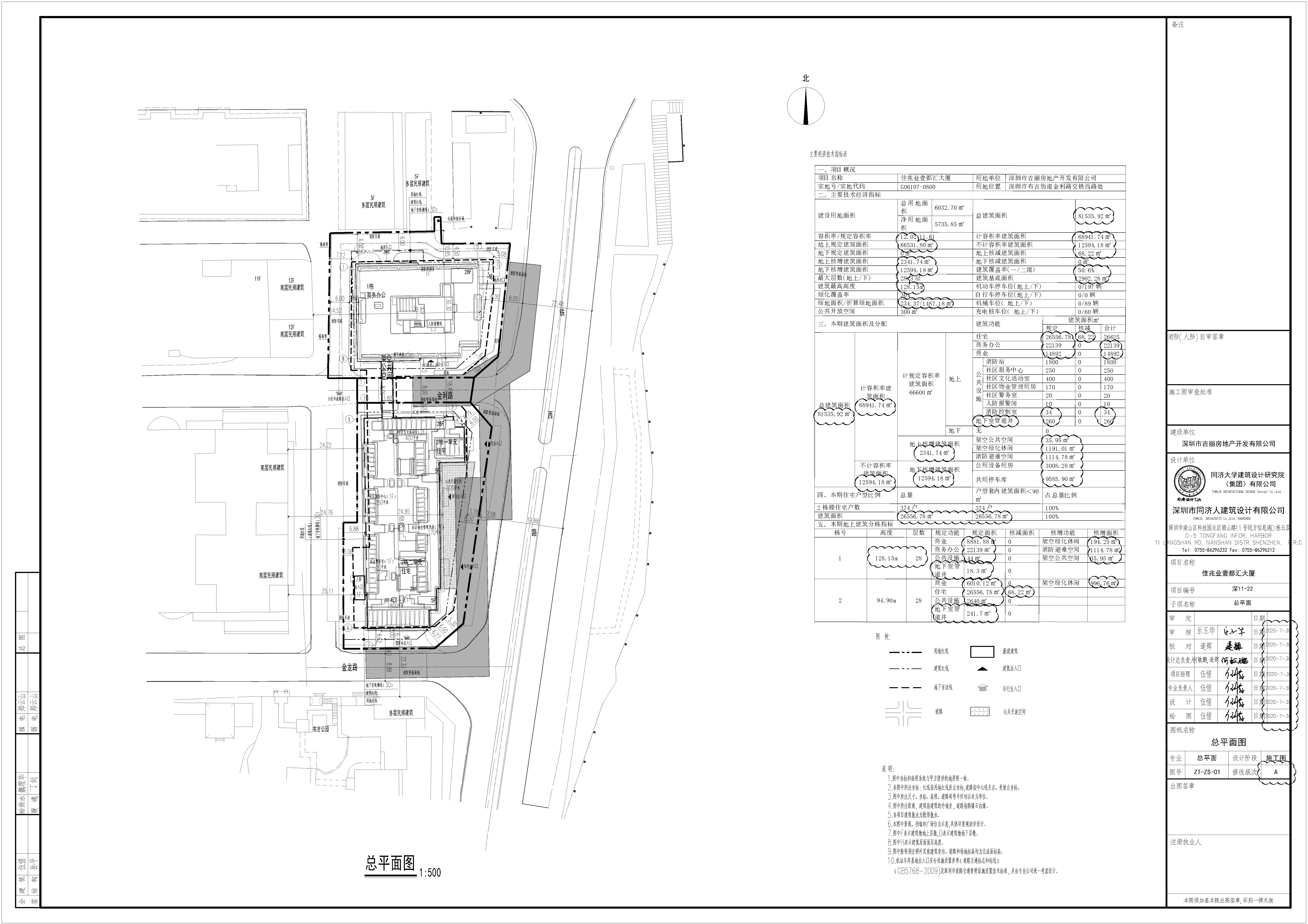 四、总图(总平面图、一层总平面及竖向布置图、消防总平面图):调整坐标系为大地坐标系,根据1栋、2栋楼修改,总图相应调整,总平面图中面积指标修正。