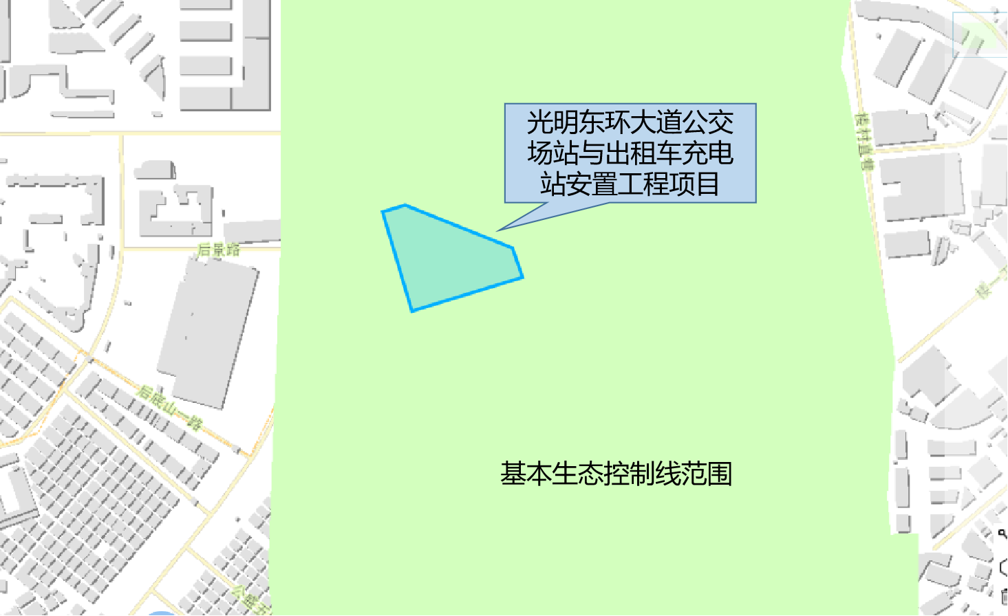 光明东环大道公交场站与出租车充电站安置工程项目属“重大道路交通设施”,根据《深圳市基本生态控制线管理规定》第十条规定,重大道路交通设施可在基本生态控制线范围内建设。