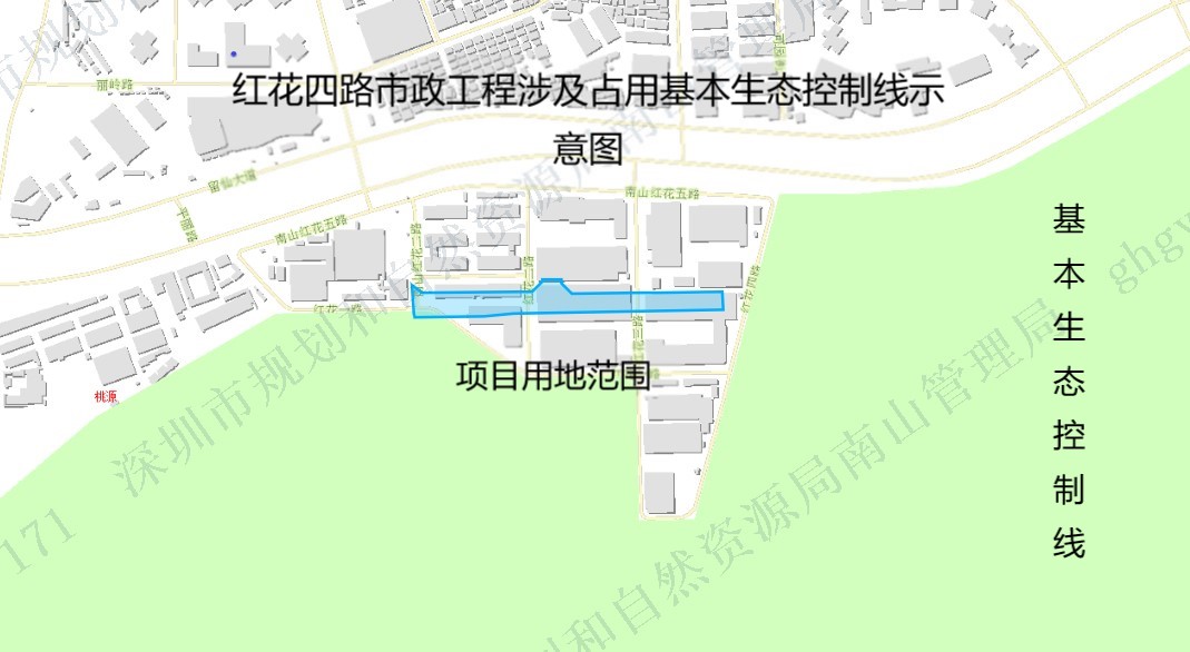 深圳市南山区建筑工务署来文申请红花四路(沙河东路至红花七路)市政道路工程的方案设计核查,深圳市规划和自然资源局南山管理局已受理。拟申请用地涉及占用基本生态控制线,根据《深圳市基本生态控制线管理规定》,为保障公众的知情权和参与权,现将项目用地占用基本生态控制线公示如下: