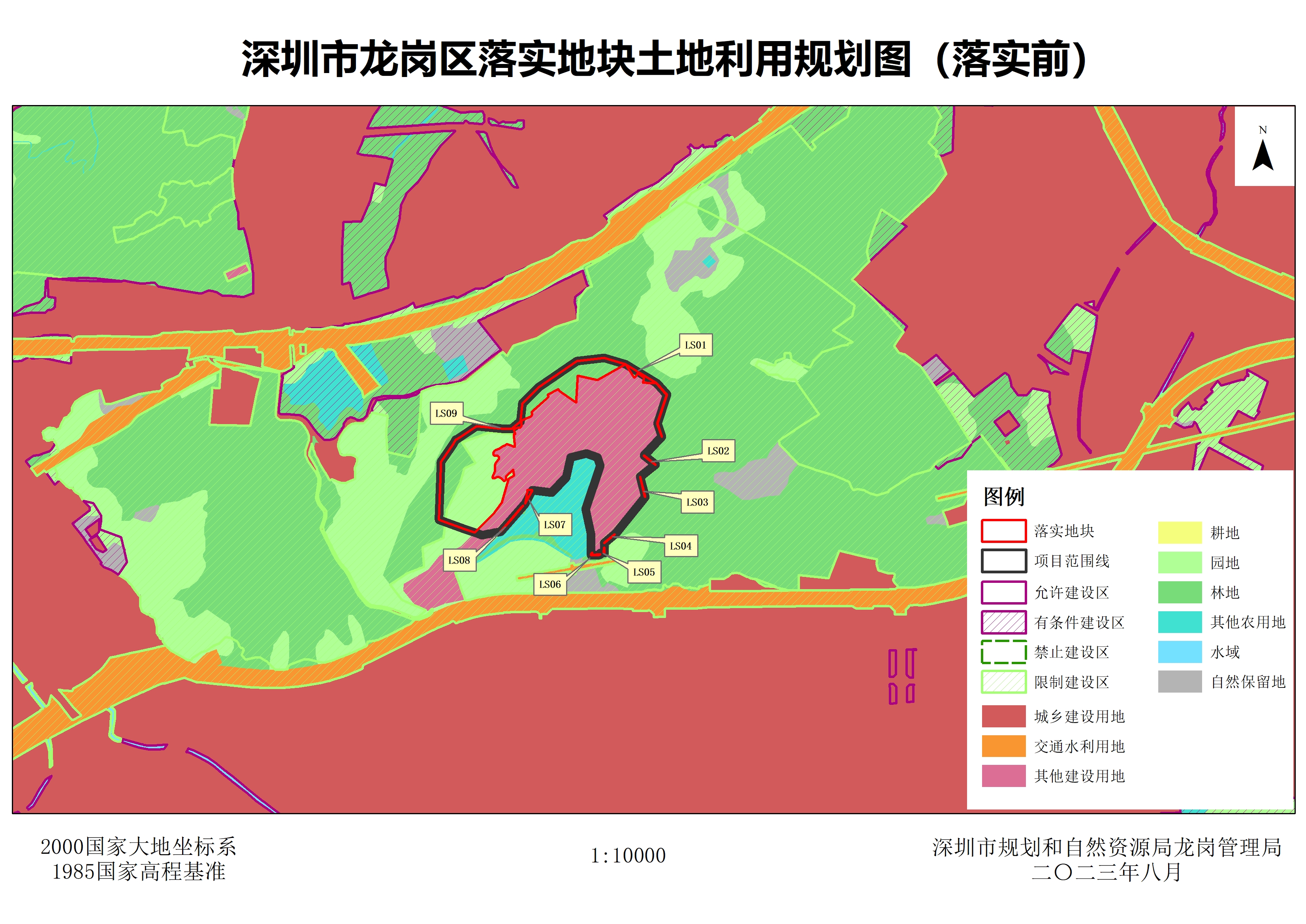 龙山永久墓园项目用地全部位于《深圳市土地利用总体规划(2010—2020年)》限制建设区,需开展土地利用总体规划调整工作。为落实项目用地,我局编制了《深圳市龙岗区土地利用总体规划(2010—2020年)预留城乡建设用地规模(预下达规模)使用方案(龙山永久墓园)》,方案已于2023年8月14日经深圳市规划和自然资源局业务会审批通过。按照《广东省土地利用总体规划预留城乡建设用地规模使用方案编制技术指南(试行)》(粤国土资规划发〔2018〕64号)及《广东省自然资源厅关于明确预留城乡建设用地规模使用有关事项的通知》(粤自然资函〔2020〕166号)规定,现将有关情况进行公告: