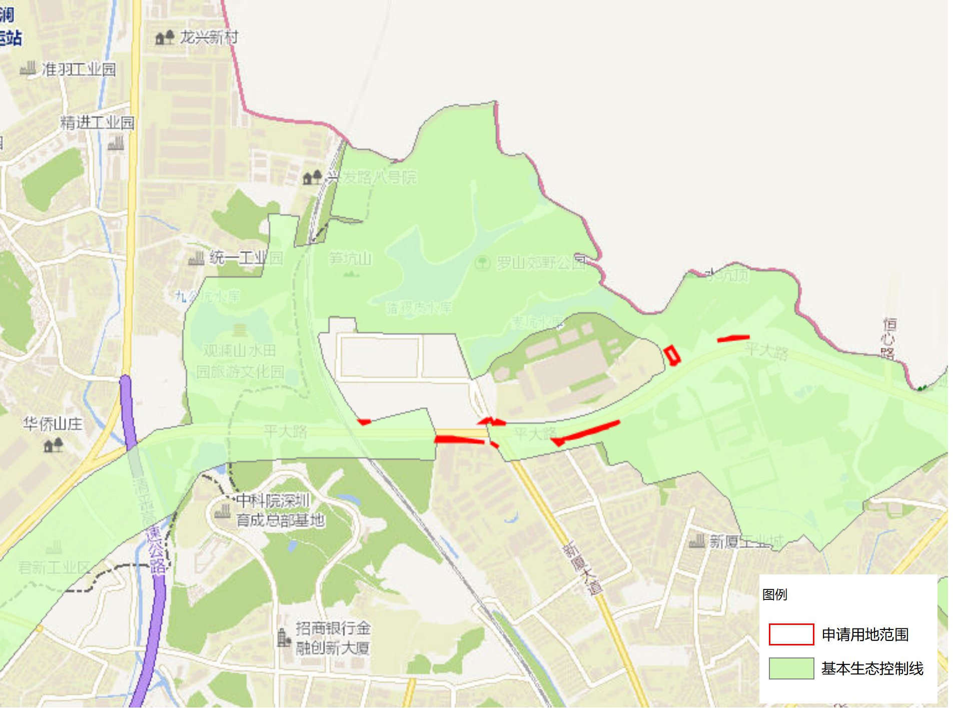 平大路提升改造工程占用基本生态控制线4704.66平方米。现依据《中华人民共和国城乡规划法》《深圳市城市规划条例》等相关法律法规,对本次相关占用基本生态控制线事项公示如下: