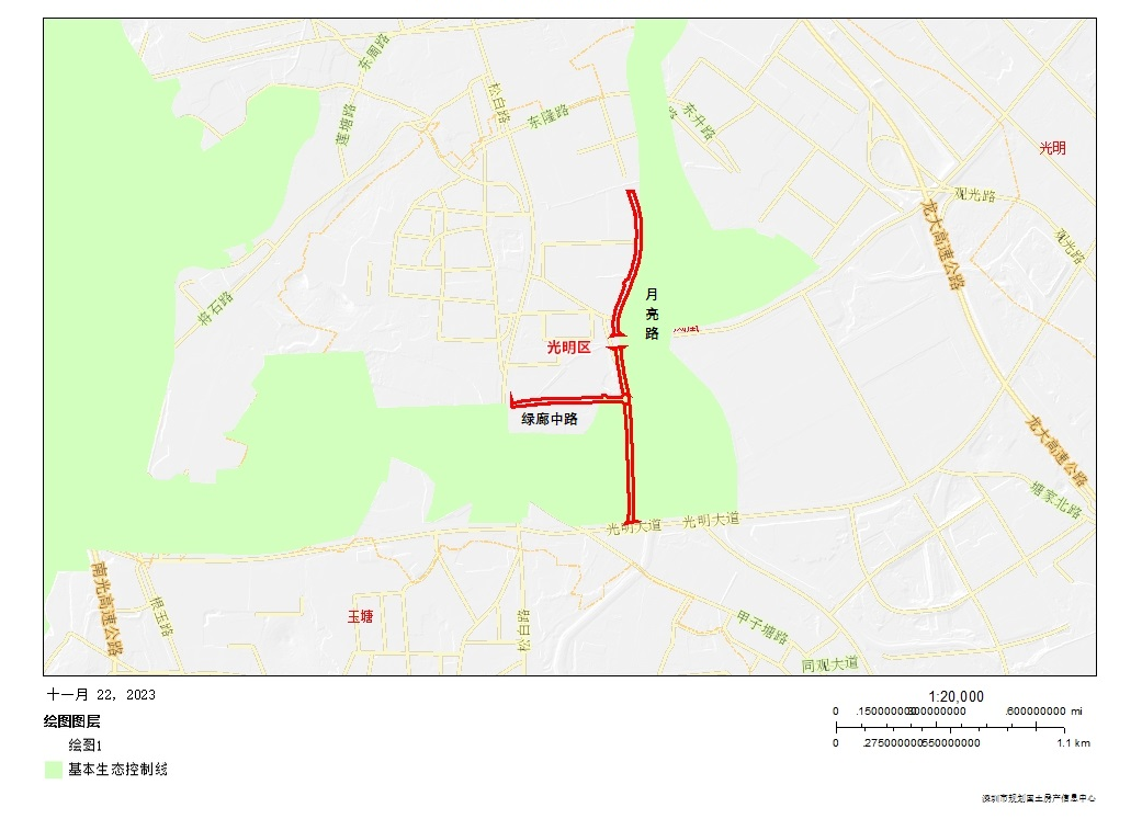 绿廊中路(松白路—东长路)市政工程和月亮路(碧塘路-光明大道)市政工程属于“市政公用设施”。根据《深圳市基本生态控制线管理规定》第十条规定,市政公用设施建设项目可在基本生态控制线范围内建设。