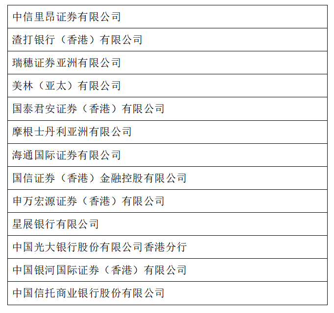 附件:深圳市2024年赴香港发行离岸人民币地方政府债券承销商名单