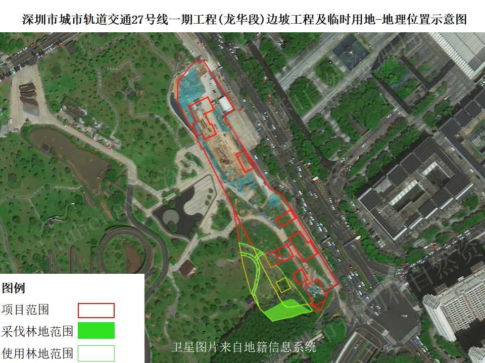 根据《中华人民共和国森林法》《中华人民共和国森林法实施条例》《广东省森林保护管理条例》和《广东省林业局关于林木采伐的管理办法》等法律法规,本着公开、公正、公平的原则,我局对深圳市城市轨道交通27号线一期工程(龙华段)边坡工程及临时用地拟临时使用林地及林木采伐有关情况公示如下: