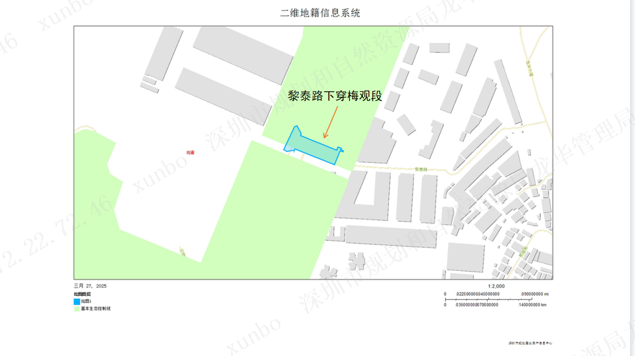 深圳市龙华区建筑工务署申请开展黎泰路下穿梅观段新建道路工程建设,涉及占用基本生态控制线,现依据《中华人民共和国城乡规划法》《深圳市城市规划条例》和《深圳市基本生态控制线管理规定》等相关规定,对该项目涉及占用基本生态控制线事项予以公示:
