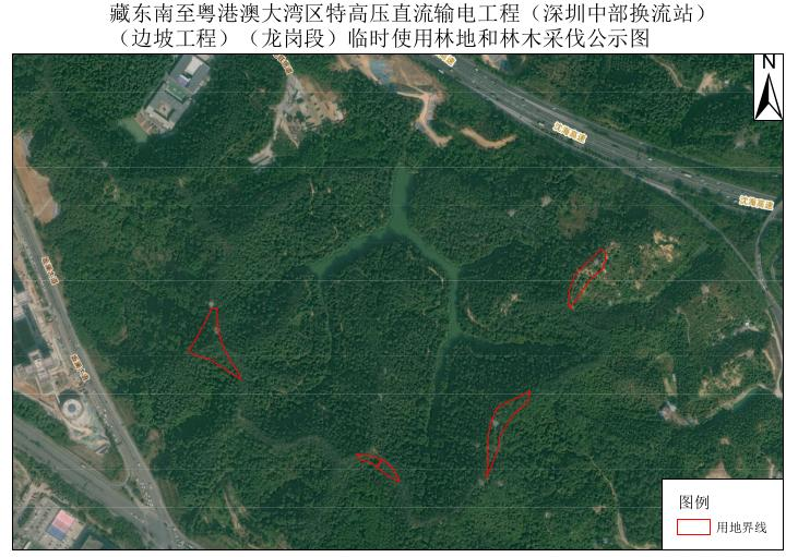 附件:藏东南至粤港澳大湾区特高压直流输电工程(深圳中部换流站)(边坡工程)(龙岗段)临时使用林地和林木采伐公示图