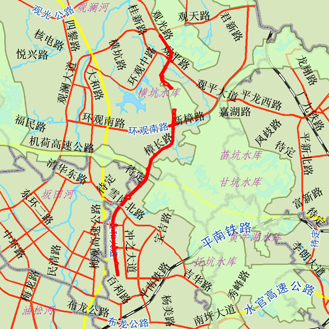 因该项目部分路段用地属基本生态控制线范围内用地,根据《深圳市基本生态控制线管理规定》第三章第十条的有关规定,现予以公示。公示时间为2008年6月16日—2008年7月16日。在公示时间内如对该选址有意见或建议,请使用书面材料方式与深圳市规划局联系,本通告自公示之日起,也将在以下网站同时发布,市民也可到下列网站进行浏览查询。