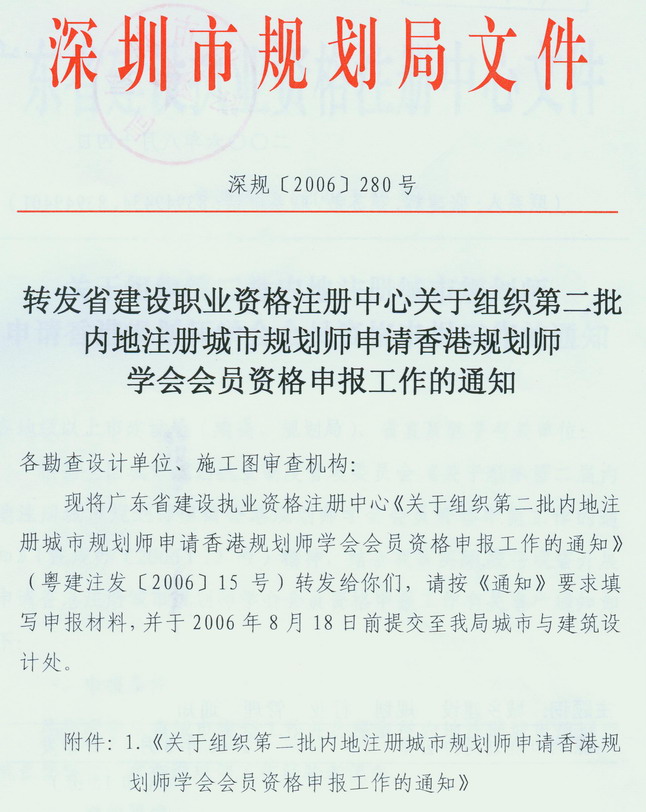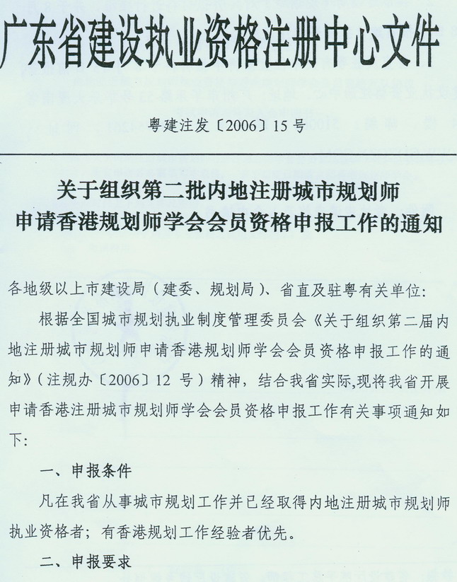 转发省建设职业资格注册中心关于组织第二批内地注册城市规划师申请香港规划师学会会员资格申报工作的通知