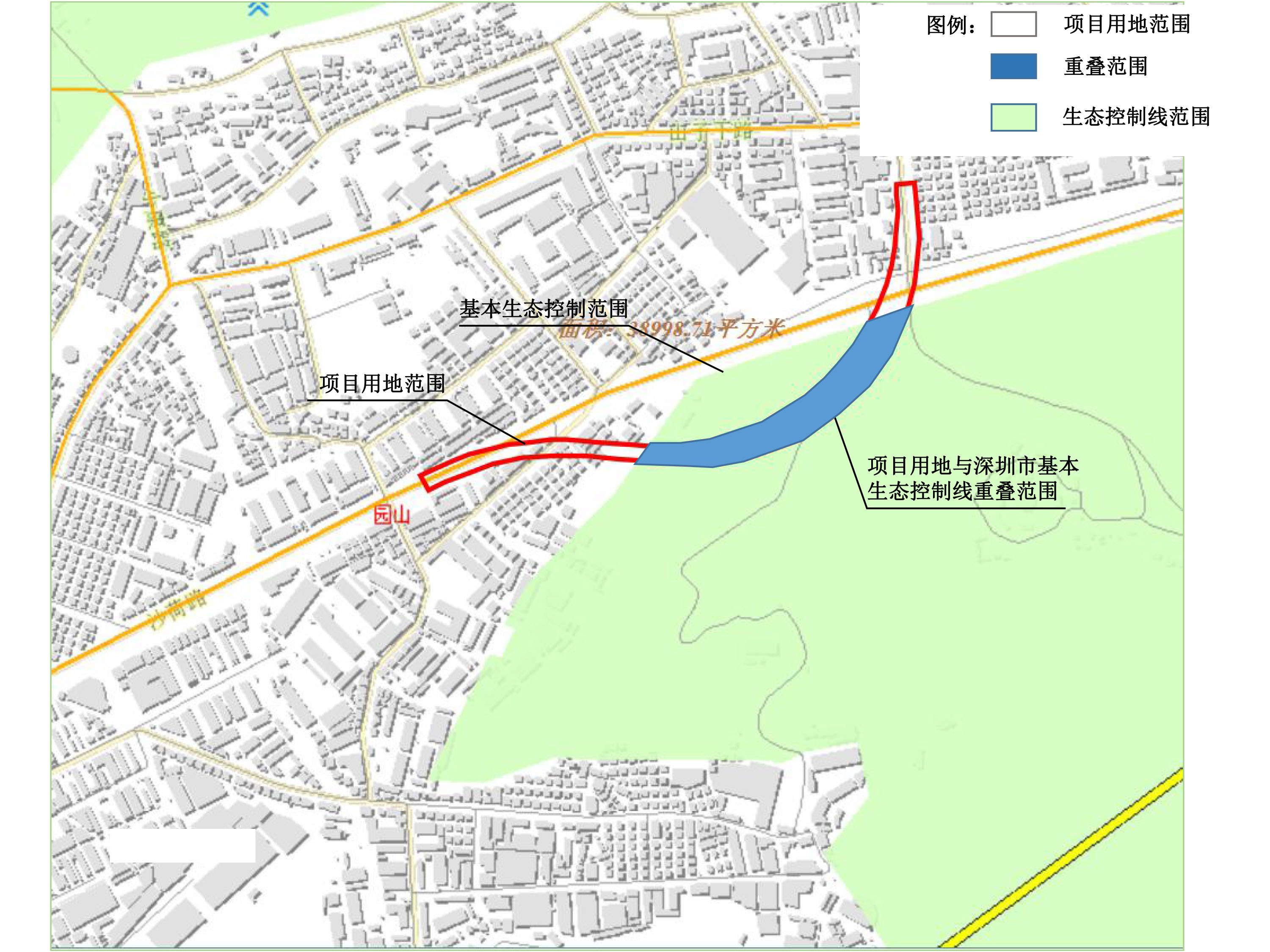 经核查,深圳市城市轨道交通16号线二期工程(园山站至龙兴站区间)申请用地总面积38998.71平方米,其中21265.49平方米位于深圳市基本生态控制线范围内。