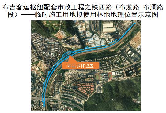 附件:布吉客运枢纽配套市政工程之铁西路(布龙路-布澜路段)——临时施工用地拟使用林地地理位置示意图