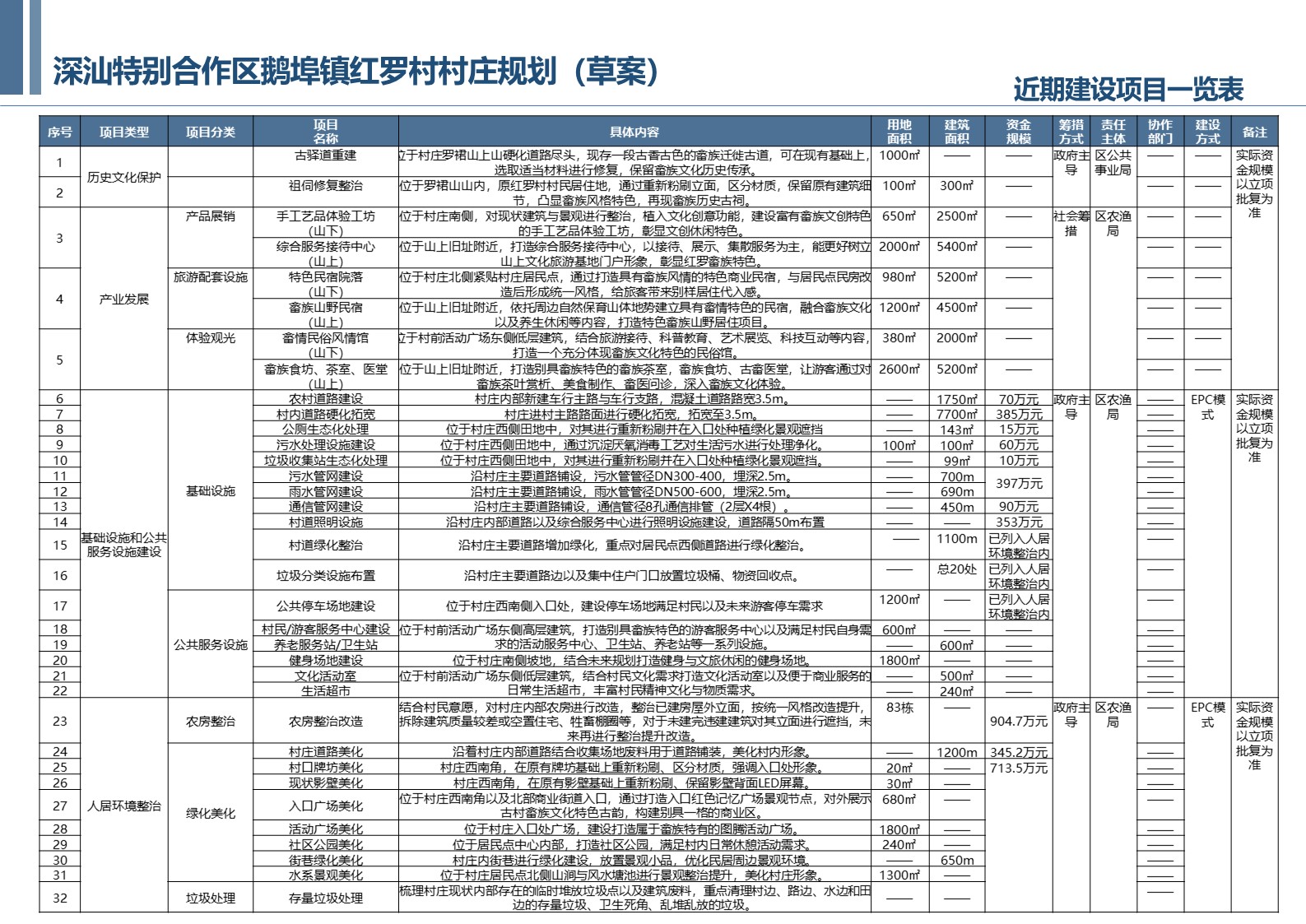 2.红罗村近期建设项目一览表