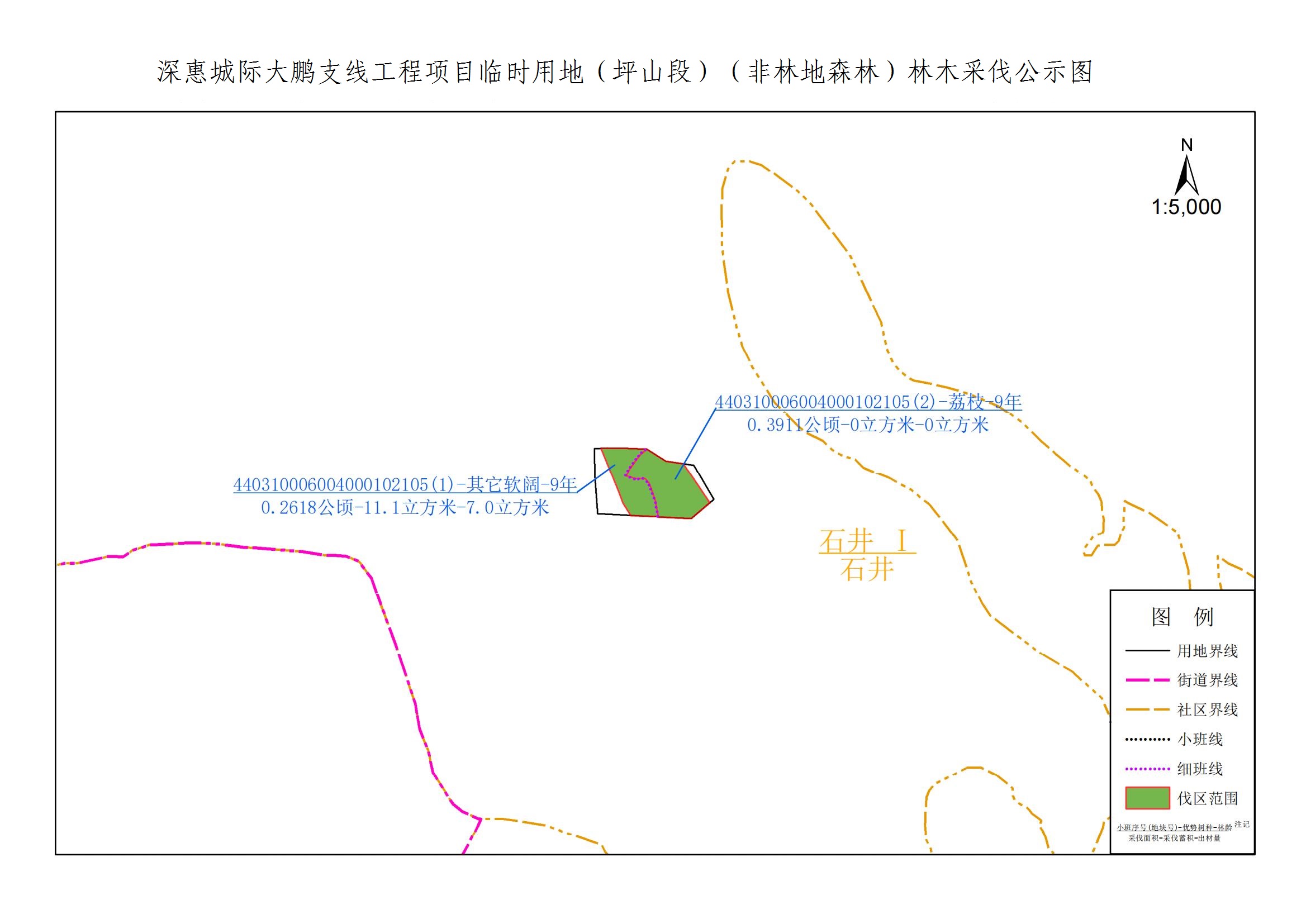 由于深惠城际大鹏支线工程项目临时用地(坪山段)建设需要,项目建设施工范围涉及林木采伐,深圳市地铁集团有限公司向深圳市规划和自然资源局坪山管理局申请采伐该项目非林地森林范围的林木,深圳市规划和自然资源局坪山管理局已受理其申请。根据《中华人民共和国森林法》和《广东省林业局关于林木采伐的管理办法》等有关规定,现将深惠城际大鹏支线工程项目临时用地(坪山段)非林地森林范围林木采伐情况公示如下: