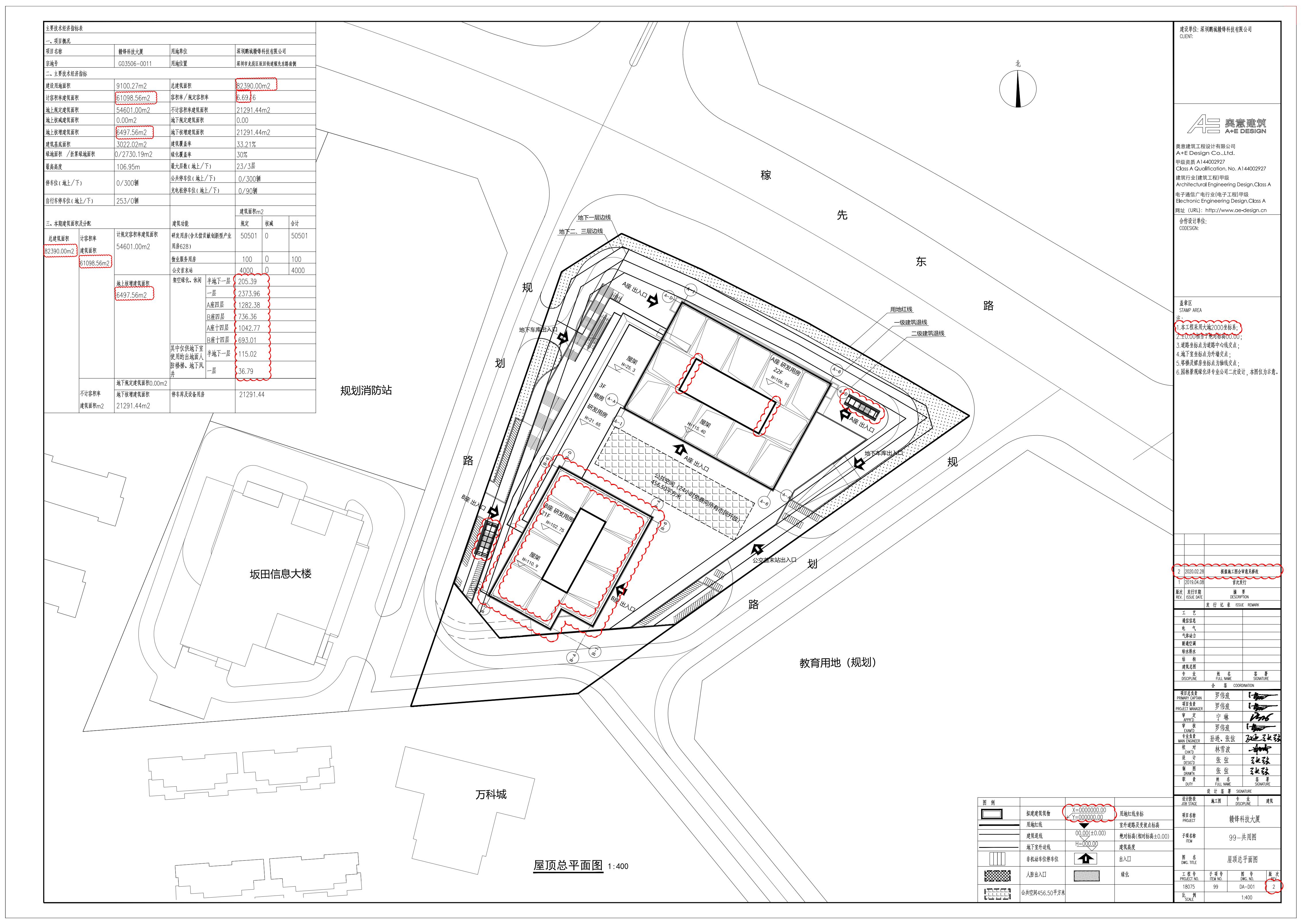 深圳鹏城赣锋科技有限公司申请办理赣锋科技大厦项目(G03506-0011号宗地)的建设工程规划许可证变更,本次申请涉及已批屋顶总平面图相关内容调整,主要修改内容为: