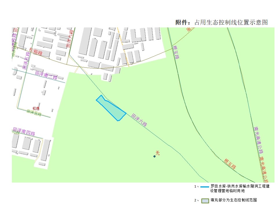 深圳市水务工程建设管理中心申请的罗田水库-铁岗水库输水隧洞工程建设管理营地临时用地位于松岗街道,该临时用地拟作为罗田水库-铁岗水库输水隧洞工程临时办公用房,用地面积为5258.06平方米,全部位于基本生态控制线内。