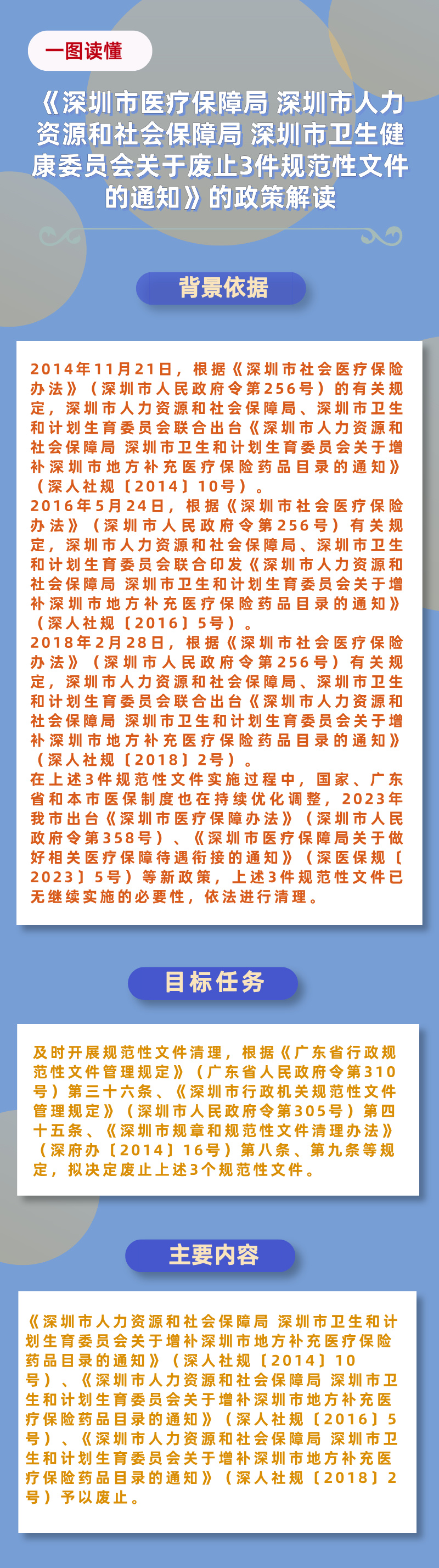 名 称:《深圳市医疗保障局 深圳市人力资源和社会保障局 深圳市卫生健康委员会关于废止3件规范性文件的通知》的政策解读