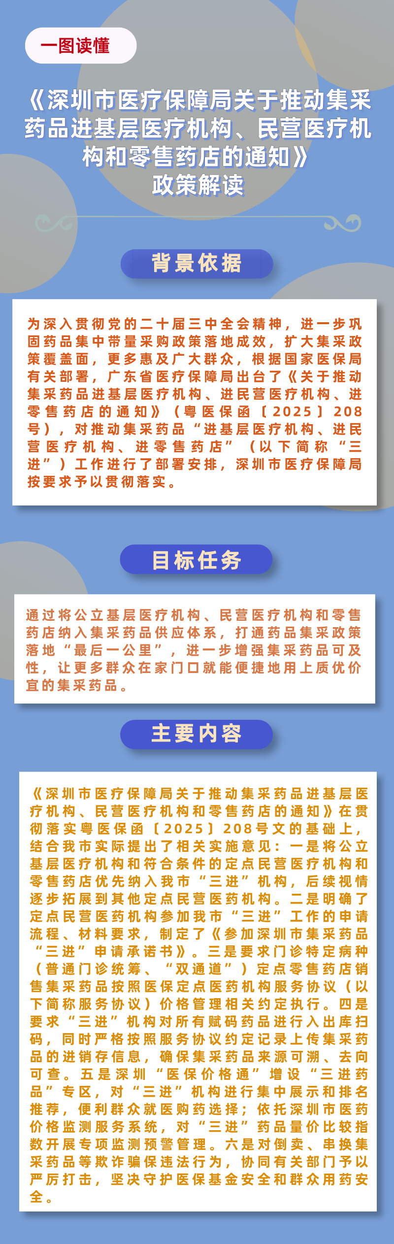 名 称:《深圳市医疗保障局关于推动集采药品进基层医疗机构、民营医疗机构和零售药店的通知》政策解读