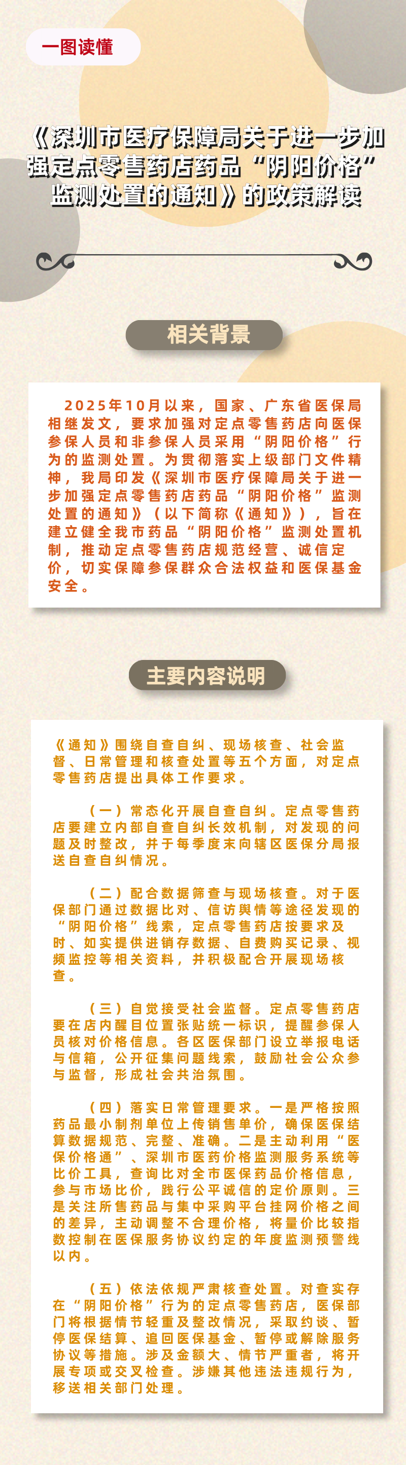 名 称:《深圳市医疗保障局关于进一步加强定点零售药店药品“阴阳价格”监测处置的通知》的政策解读