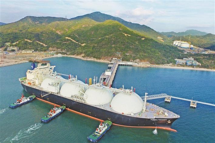图为LNG船舶“能源进步”号,正在靠泊国网深圳天然气有限公司码头,预计卸货6.5万吨,为粤港澳大湾区提供清洁能源保障。