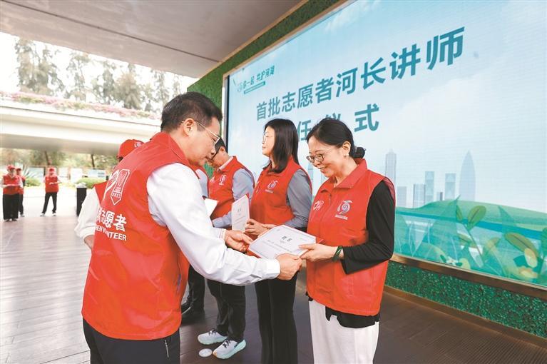 昨日,深圳市志愿者河长行动启动仪式举行,图为向首批“深圳市志愿者河长讲师”颁发证书。