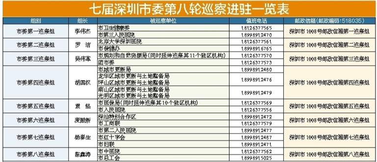 根据市委巡察工作部署,近日,七届深圳市委第八轮巡察完成进驻工作。8个巡察组将对深汕特别合作区等16个单位党组织开展常规巡察,对南山、龙华、坪山、光明等4个区的城市更新和土地整备局党组织开展提级巡察。