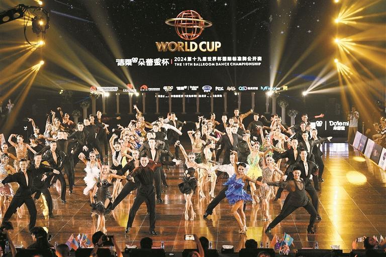 第19届世界杯国际标准舞公开赛昨日在深圳福田会展中心5号馆拉开帷幕。开幕式上,星光熠熠,国内外舞蹈精英齐聚一堂。选手们精湛的舞技和默契的配合赢得现场观众阵阵掌声。