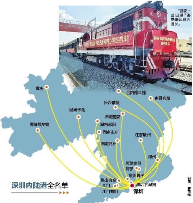 深圳市交通运输局有关人员介绍,深圳港服务覆盖粤港澳大湾区、西南及华中地区。加强内陆港建设布局,把国际大港搬到内陆客户“家门口”。继续加大内陆港向西南和中南地区布局力度,持续拓展内陆港货源腹地,鼓励码头新开行海铁联运班列,通过海铁联运的方式将内陆港货源运至深圳港出口,提升港口多式联运效率与综合服务水平。深圳港已累计挂牌运营19个内陆港,覆盖广东、湖南、江西、贵州、重庆等5省市。年初至今新增挂牌运营佛山官窑、湖南怀化、重庆团结村、湖南邵阳等4个内陆港,1-7月通过内陆港模式完成集装箱吞吐量10.82万标箱,同比增长11.35%。