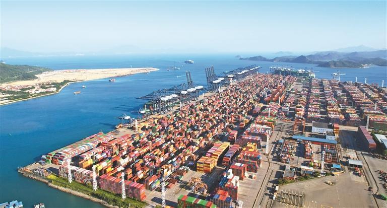 盐田港区入选“双碳”试点港区,图为盐田港航拍。