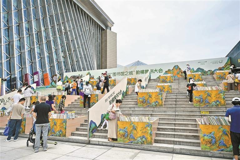 深圳“图书馆之城”阶梯换书大会以《千里江山图》作为场景设计。
