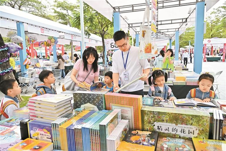 除了成年读者外,书展也吸引了众多小读者的身影。逛书展已成为深圳荟同幼儿园的一门必修课,在这个实践课堂中,小朋友们翻阅着心仪的绘本,学习做出自己的选择。“今年,约有10位大班的小朋友在老师带领下来到书展现场,有的喜欢科普类绘本,有的喜欢故事类,孩子们很喜欢这种上课方式。”带队教师李雅筠说。