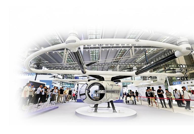 第十四届中国电子信息博览会上展出的eVTOL飞行器ZG-ONE鹊飞。