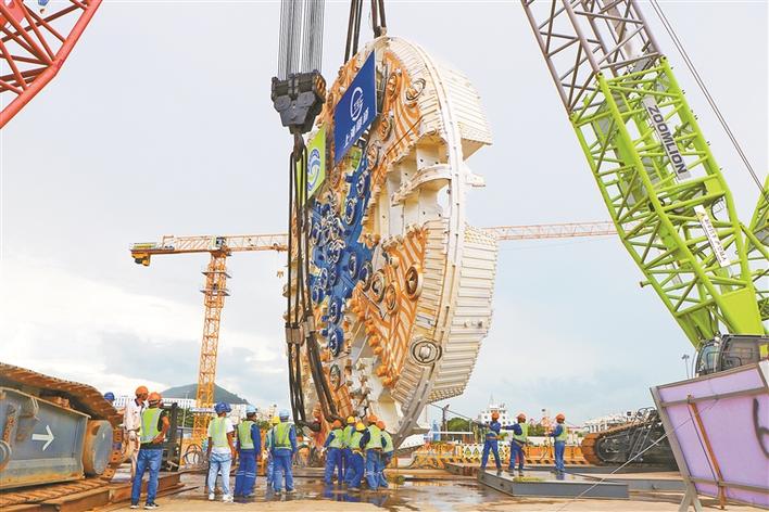 妈湾跨海通道建设工程“鹏城号”盾构机下井现场。