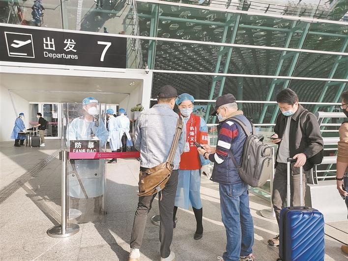 深圳机场为旅客开展防疫查验,确保旅客安全出行。