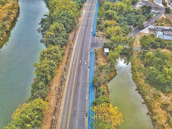 近日,位于深汕合作区的S387赤石段道路维修工程顺利完工。彩色的慢行道向脚下延伸,道路两侧新栽的樱花木棉树长出嫩绿新叶,阳光洒向明热河,暖风和煦,吸引不少当地群众和外来旅客观光游览。