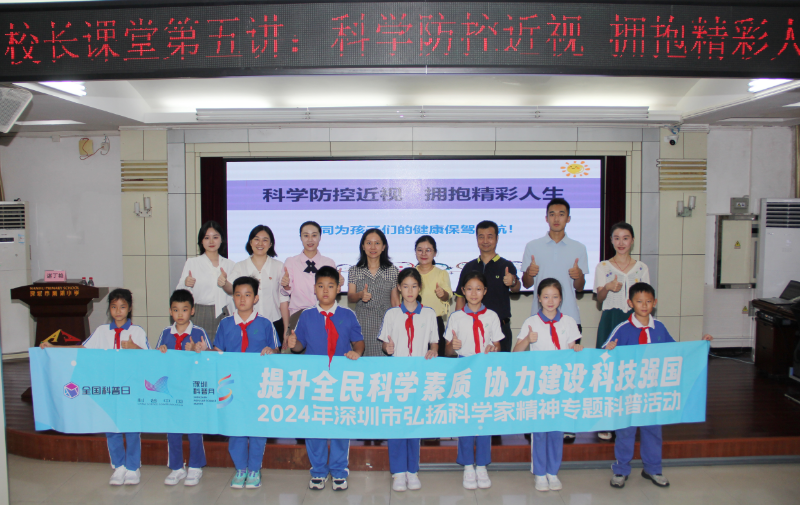 9月30日,2024年深圳市弘扬科学家精神专题科普活动走进南湖小学。深圳市疾病预防控制中心环境与学校卫生科副主任医师谌丁艳作为主讲嘉宾,宣讲近视眼的危害、防治、治疗等知识,为孩子们的眼健康保驾护航。