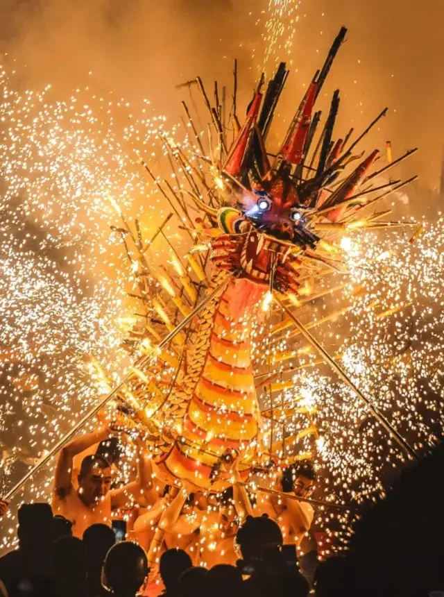 Witness the breathtaking "Fengshun Fire Dragon" dance in Meizhou. Performers carry a dragon spewing fireworks through the streets, creating a truly unforgettable and red-hot celebration.