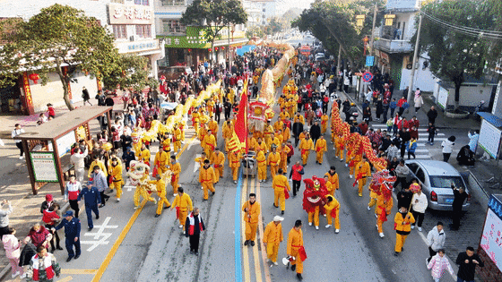 See magnificent dragon dances parading through cities and villages. In Shaoguan, you can even see a 399-meter-long dragon, the "Longest Dragon in Guangdong."